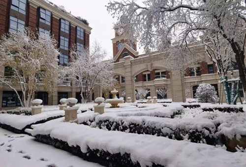 一場大雪過后,清晨的辦公大樓銀裝素裹、粉妝玉砌,純凈如冰川湖水,一串串足跡,留下員工奮斗的印記。