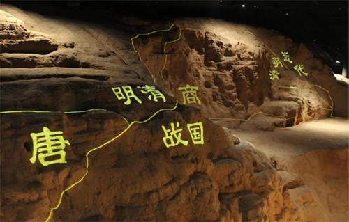 第二展廳部分場景復原運用了三維立體掃描、建模和 3D 打印的新技術,展示鄭州商都發(fā)現(xiàn)的重要遺跡,如紫荊山路南城垣斷面展示,夕陽樓人骨祭祀坑、向陽回族食品廠青銅器窖藏坑展示等。三維立體掃描和3D打印的技術運用,充分還原遺跡和考古發(fā)掘現(xiàn)場,最大限度保護文物和文化遺產(chǎn),新技術的運用也減少了展廳施工的難度,節(jié)省資源和成本,視覺感官上無差別的遺跡展示,帶給觀眾親臨現(xiàn)場的真實感和體驗感。